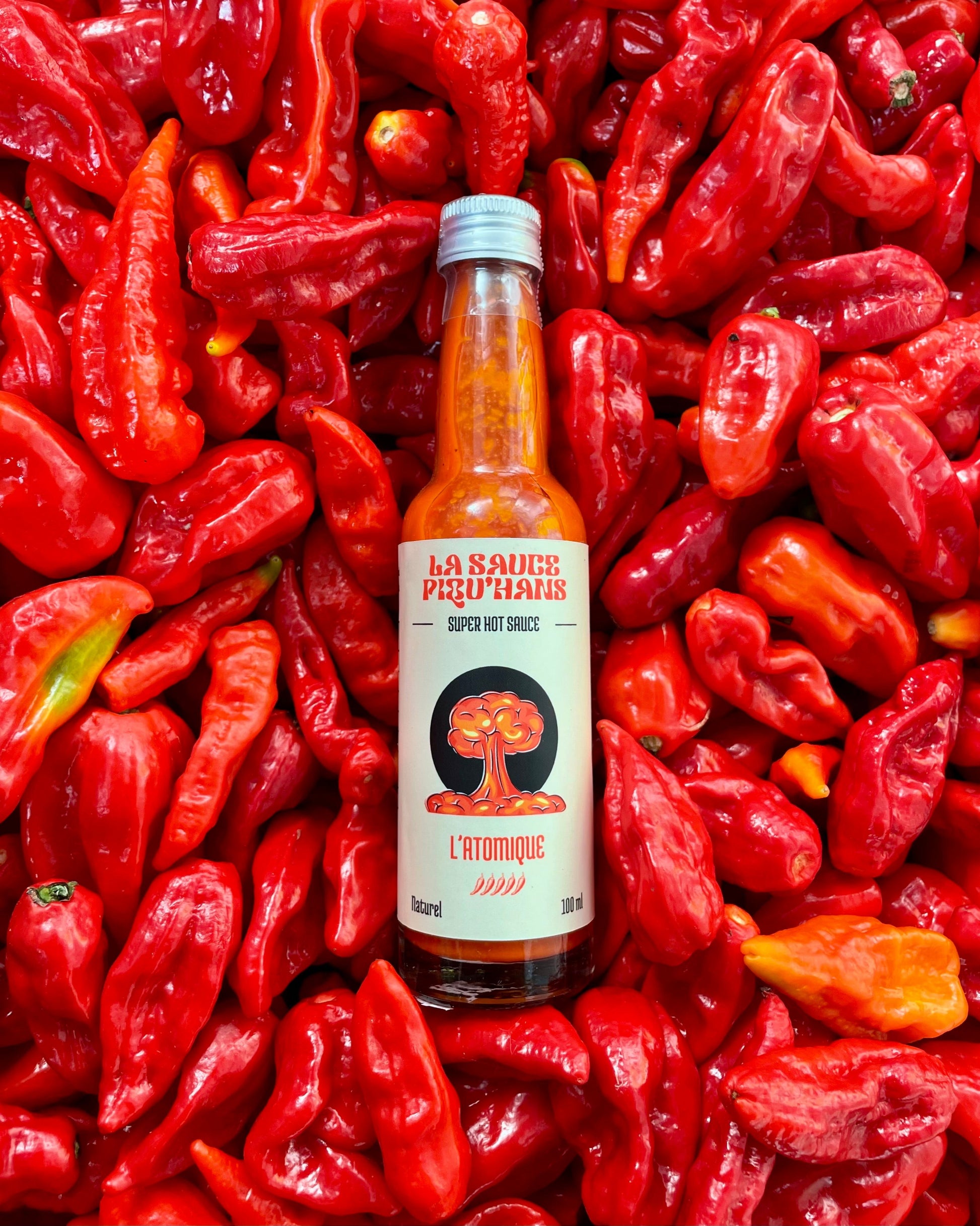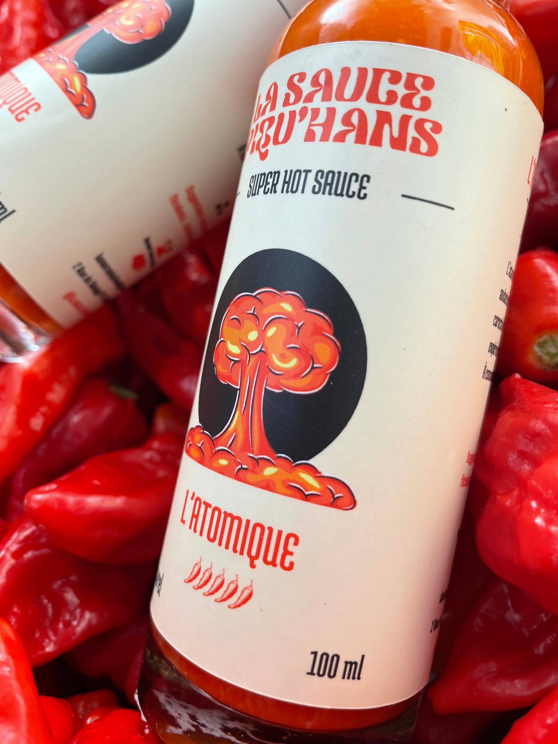 L’Atomique est une explosion audacieuse de trois piments au caractère bien trempé pour une expérience ardente en bouche.